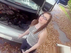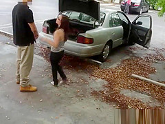 Sexy hitchhiker gets slammed about the roadside