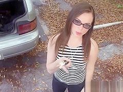 Pretty pawning legal age teenager enjoys riding overweight rod