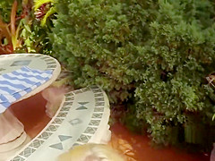 Golden-Haired legal age teenager bangs peeping tom in trampoline