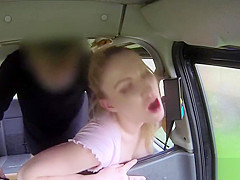 Natural breasty golden-haired bonks fake taxi driver