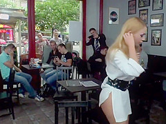 Golden-Haired caned in public park and bar