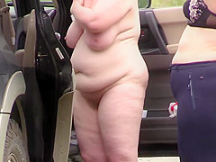 Voyeur spies on plump milfs outdoors. Older lesbian babes behind the scene.