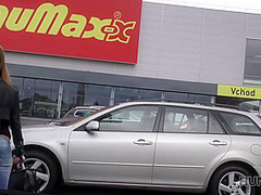 Description: Concupiscent cutie has indecent sex in the car in front of bf