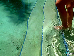 At poolside, Melissa leaves the pool and receives on a recliner. Armed with a bottle of clear sun gel, that babe squirts her huge whoppers and rubs the stuff in well, massaging and fondling these whopping whopper. They shine in the sun as Melissa shakes, swings and squeezes 'em. The flesh undulates as this babe clutches fistfuls of breast meat. Her hands cannot hold greater amount than a fraction of their volume. This beauty is greater amount than a real handful, the very essence of voluptuousity.