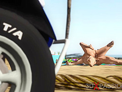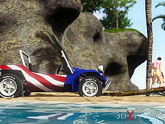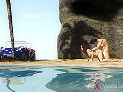 Sexy sex! Dune buggy, topical beach and lustful hawt brunette hair