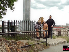 Public doxy caned and facefucked by masters