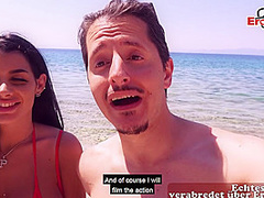 German lalin girl pair pick up large marangos doxy for outdoor trio ffm at the beach