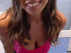 I had no idea my bigtitted step-sister had such a massive crush on me, but when this babe snuck into my bath and stole my towel just to have an excuse to watch me undressed I knew this whore wanted greater quantity. That time it all ended up with her getting in nature's garb and having me tit-fuck her, then the very next day this babe sucked me off and lastly tempted me to fuck her on a terrace. Stud, what a body! Fuck being step-siblings because I want to drill that taut curly cookie another time!