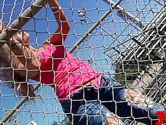 Breana in bitch gives face hole gagging bj in the outdoors