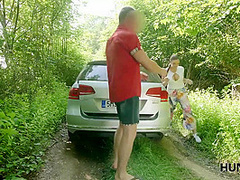 Sexy hitchhiker gets slammed about the roadside