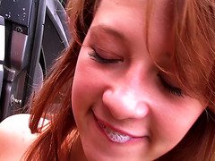 Breana in bitch gives face hole gagging bj in the ou...
