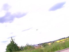 Sexy hitchhiker gets slammed about the roadside
