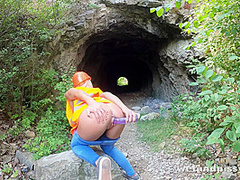 It's the second part of Claudia's enjoyment in nature and this wicked builder opens up her reflective jacket and shows off her bra buddies! Imagine finding her on your building web resource!? Pulling down her denims, this hot golden-haired begins muff pissing down into her jeans and soaks 'em totally on the crotch and down her legs. Claudia likes peeing her panties and sits down on a rock and begins fingering her juicy love tunnel as the camera zooms in close on her love tunnel play then this babe pees towards the camera, soaking the lense! Using a purple sex toy, Claudia bows over with her butt in the air and bonks herself previous to that babe holds her toy below her and pees all over it. This wicked blond clearly needs to empty her bladder and after some greater amount cunt play, that babe leans over to one side and piddles another time on the ground to finish off her latest pissing porno!