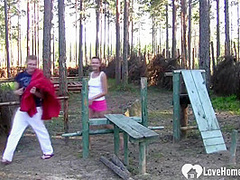 Dark Brown receives her muff shafted hard outdoors