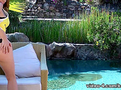 Large mangos dark brown Emily Addison diddles herself to big O out by the pool fingering her muff at HotBabes4K
