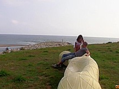 2 sexy girlfriends have sex outdoors