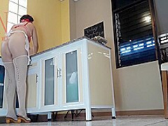 Regina Noir - Nudist Housekeeper Cooking At The Kitchen. Exposed Maid Makes Dumplings. Undressed Cooks. Hidden Camera three