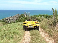 Sexy hitchhiker gets slammed about the roadside