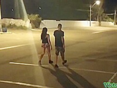 Breana in bitch gives face hole gagging bj in the outdoors