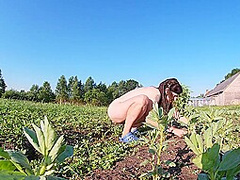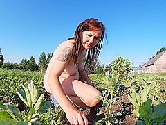 Farmers Wife Masturbates In The Field