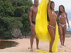 Thick Shlong Pounds 2 Colombian Honeys Taut Assholes On The Beach