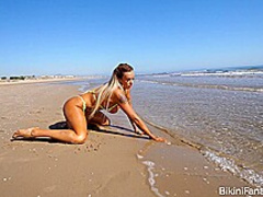 This bikini model with her large fake zeppelins likes to show off. When this babe is wearing this extraordinary micro bikini things turn out to be wild and super raunchy and this babe likes to show off. A win win!