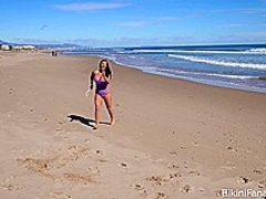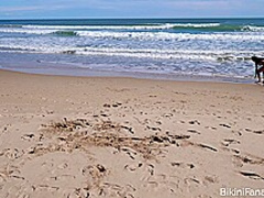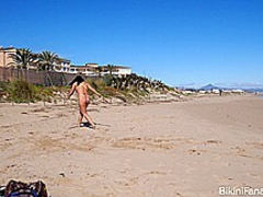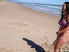 Large a-hole bikini amateurs playing beach tennis