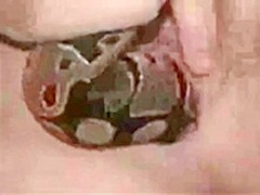 A nude beauty puts a aperture live snake inside her wet crack
