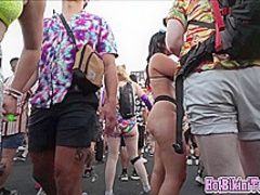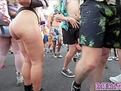 Kewl arse Latin Babe raver cutie shaking her large butt cheeks at rave festival