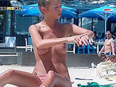 Skinny And Stripped Beach Beauty Is Trying To Catch Some Sun