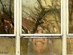 Jeny Smith teasing the strangers thru the window