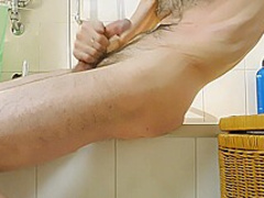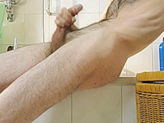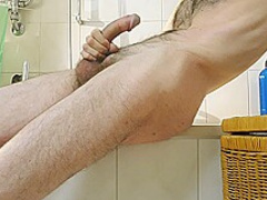 Claude from Olten, large Swiss dong, 7 inches, hetero, jerking off his schlong in his baths, spoiled big O by end of battery