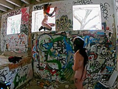 Brille And Cheri Tagging Graffiti Undressed Whilst On Vacation And Laying On A Topless Beach