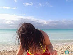 This was part of a Caribbean island invasion that made the world a more excellent place to live in, and not one discharged was fired. SCORE invaded Grand Bahama Island with an international commando squad consisting of Natalie Fiore, Taylor Steele, Arianna Sinn, Jenna Valentine and Karla James. The results were ultimately made into a DVD called On Location Grand Bahama. This was likewise the solely DVD to feature British newcomer Karla James, a awesome SCORE discovery who solely modeled a not many times. During the week, Natalie interviewed Arianna, who did a brief lesson in speaking Romanian. 'cuz of Natalie's regal bearing and photogenic personality, u might think of her as a towering, imposing, Amazonian woman. This Babe usually wears shoes with very lengthy heels and that enhances the impression. The way some angels stand too makes 'em look taller than they are, and Natalie has this kind of royal quality. But here that babe is barefoot on the beach.