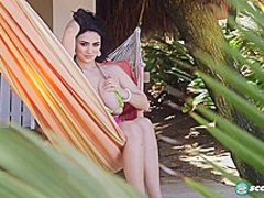 It's a lengthy way from Alexya's native Romania to the north coast of the Dominican Republic, where this scene was filmed. This lush tropical hideaway thrills her, and her look of delight will final lengthy after this babe returns home. Relaxing on a hammock, beautiful Alexya soaks in the paradise of the North Coast, light years away from the hectic pace of life in Europe. Alexya is wearing a green string bikini, one of many swimsuits she's brought to the tropics. That Babe changes into a purple swimsuit and walks to the quiet beach to explore. When that babe returns to the resort, a now absolutely nude Alexya steps into the outdoor shower. That Babe rubs her large whoppers and touches her lengthy love tunnel lips, gazing at the camera with her peculiar kind of erotic magic.