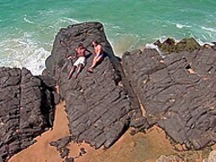 Dark And White Share Oriental Wench At Beach By Femdom Sex. Dark And White Share Oriental Floozy At Beach