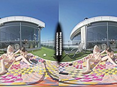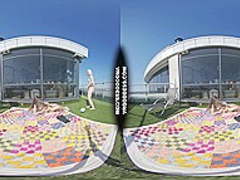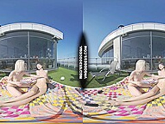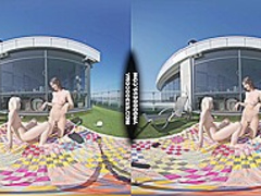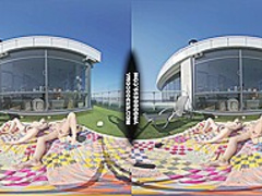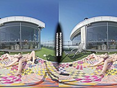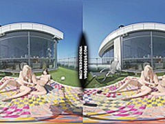 two Sexy Beauties Rebeka Ruby And Ingrida Masturbating In The Sun With Glass Dildos Bubbles And Sunbathing