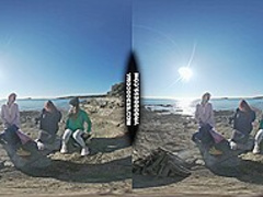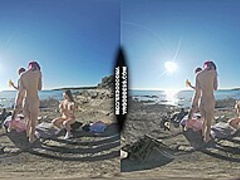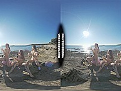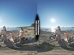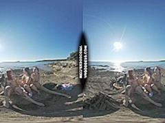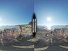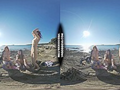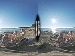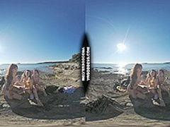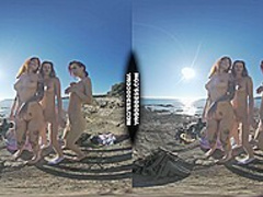 three Sexy Beauties Getting Bare On Beach During Winter Making Fire Eating Bananas Dancing