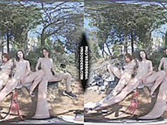 three Beautiful Chicks Exposed In Forest Playing With Their Vaginas Next To Abandoned Building
