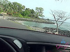 Gia is super lascivious to go to Hawaii with u, especially since u got her a large coffee mug in advance of u go. That Babe throws on a bikini so u can go right away to explore the island. Gia can't live without the little dark goats on the side of the road along with the lava...