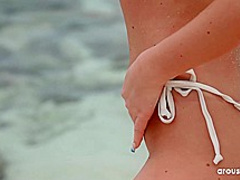 Arousins.com clip! Join Candice Demellza as that babe enjoys a marvelous day at the beach. Wearing a diminutive bikini that shows off her natural curves, that babe takes in the sun and the warm sand right betwixt her