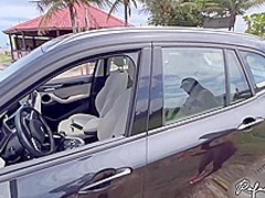 Sexy hitchhiker gets slammed about the roadside