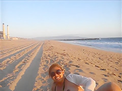 Hotty with plug in the a-hole positions for a lad at a public beach