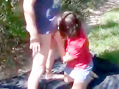 Breana in bitch gives face hole gagging bj in the outdoors