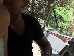 Sexy hitchhiker gets slammed about the roadside