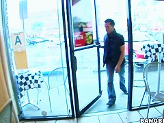 Breasty bitch Mason Moore teases juvenile dude in bathroom