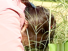 Breana in bitch gives face hole gagging bj in the outdoors