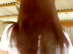 Lewd pornstar in fabulous brunette hair, non-professional porn scene
