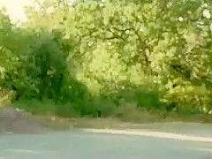 Sexy hitchhiker gets slammed about the roadside