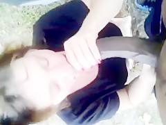Breana in bitch gives face hole gagging bj in the outdoors